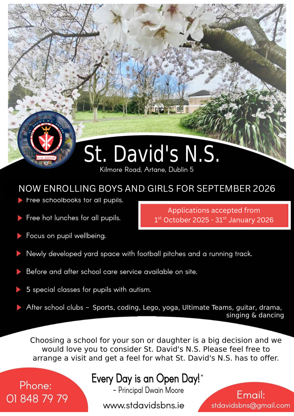 Phone 01 848 7979 or Email stdavidsbns@gmail.com for more information!